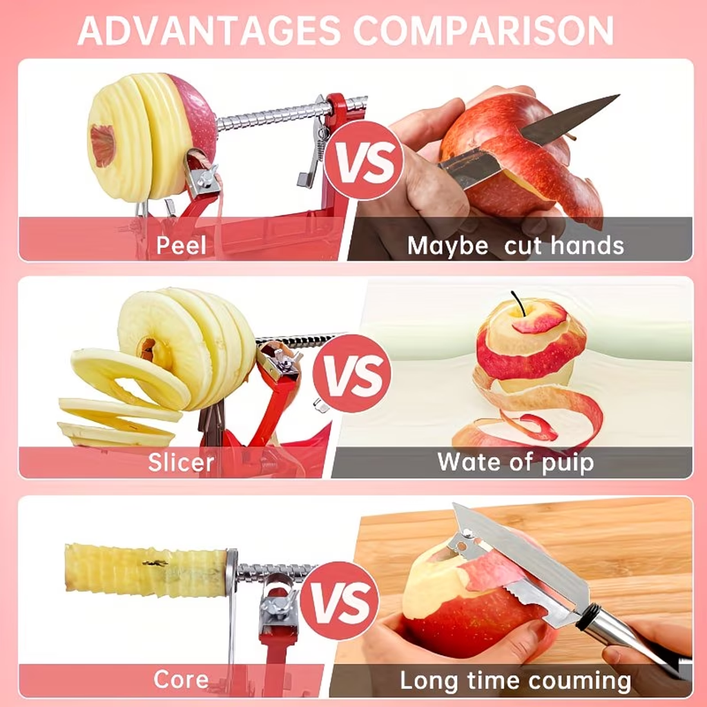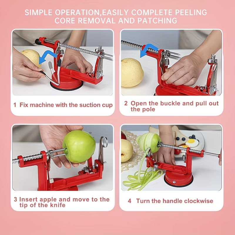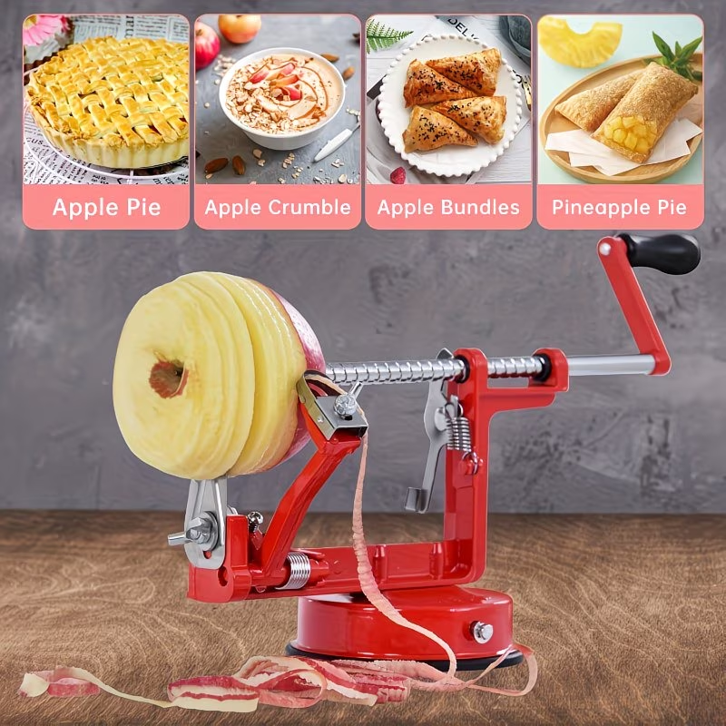 Durable Chrome Cast Magnesium Alloy for apple Peeler Slicer Corer with Stainless Steel Blades And Strong Suction Base for Apples And Potatoes (Red)
