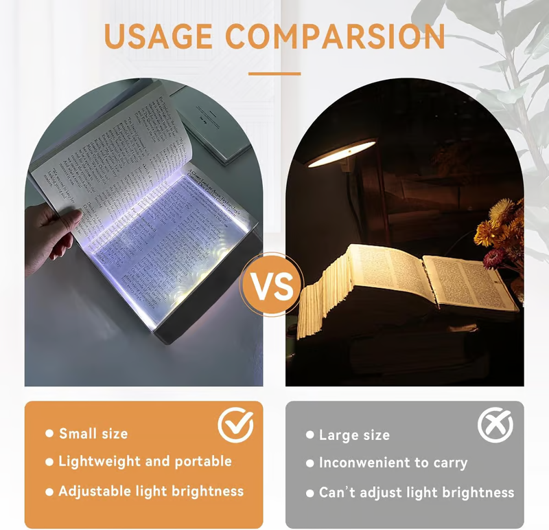 The tablet reading light is an innovatively designed reading light source that only illuminates the page you want to read without letting the light shine directly into your eyes or affect others.